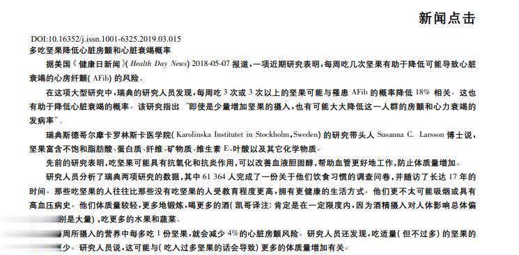 参考资料[1]刘晓荻,王欣.多吃坚果降低心脏房颤和心脏衰竭概率[J].基础医学与临床,2019,39(03)