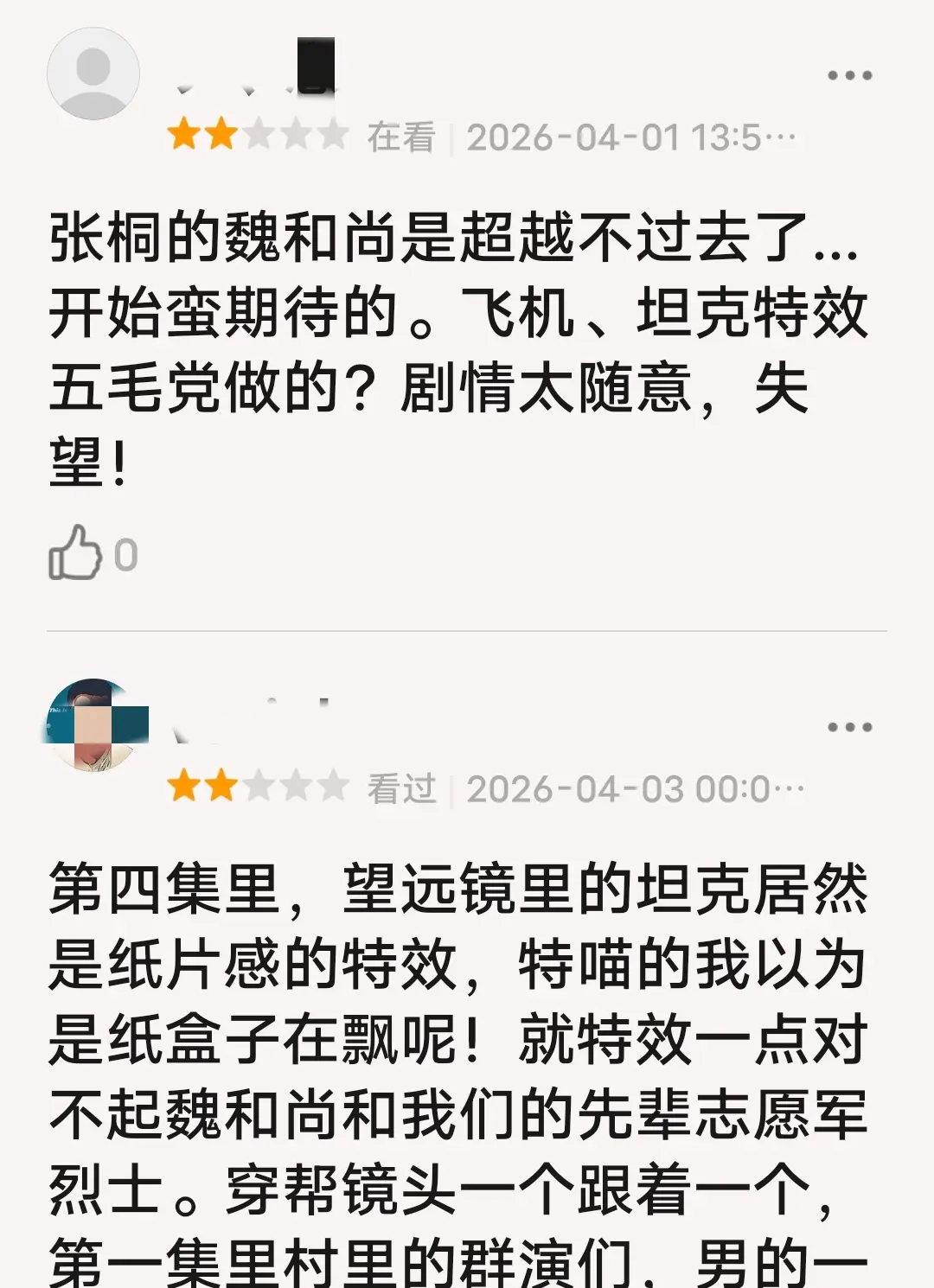 抗美援朝那段历史,是十几万英烈用生命铸就的,容不得半点轻慢。观众不是不接受战争剧,而是不接受敷衍的战争剧。