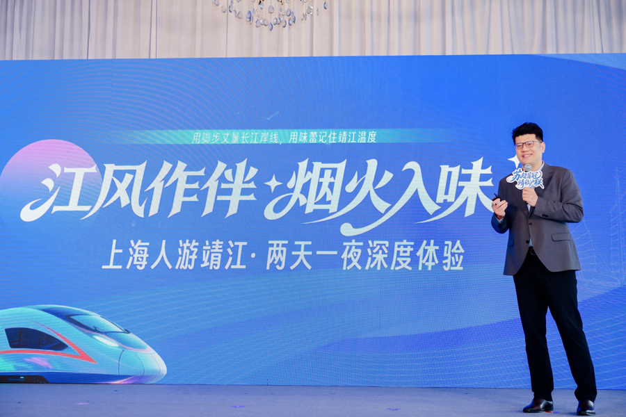 在嘉宾分享环节,上海大新华会展有限公司总经理严铮生动讲述了“上海人游靖江”的故事。从长江岸线的漫步体验到非遗蟹黄汤包的舌尖记忆,从红色历史的沉浸追忆到古镇老街的烟火气息,分享内容贴近市场、贴近游客,引发在场嘉宾强烈共鸣。