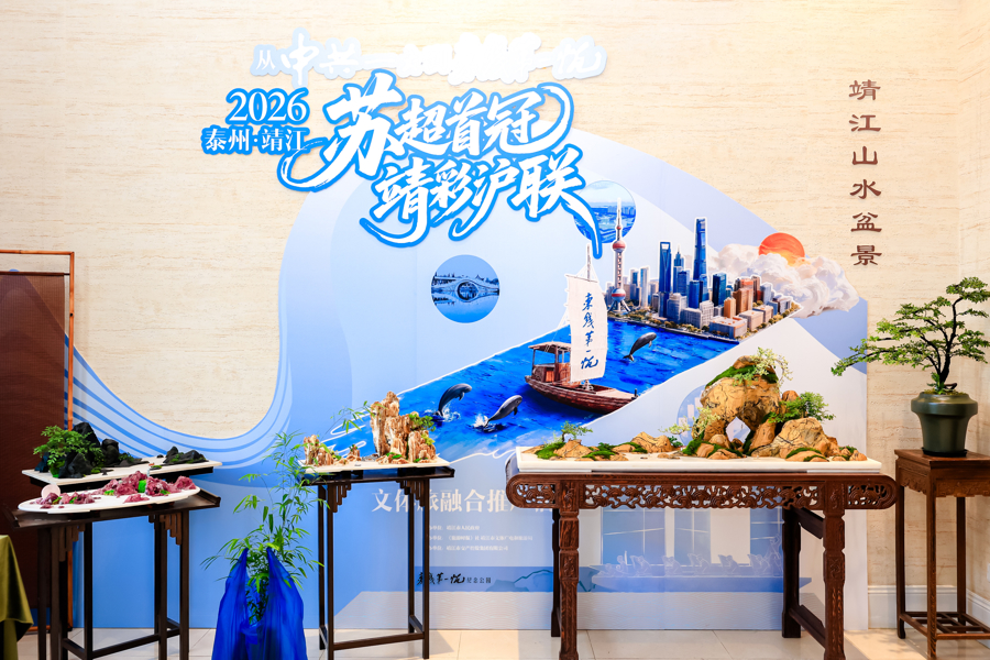 在靖江文旅体验区展示环节,现场播放视频,介绍靖江将独具特色的艺术作品与“东线第一帆”文旅展陈带到黄浦江畔,与上海陆家嘴四大地标同框而立,借力2026年上海花卉节流量热度,向上海市民及海内外游客发出诚挚的靖江邀约。活动正逢人民海军诞生77周年,北外滩畔彩旗映江,战舰巍然,与“东线第一帆”文旅展陈穿越时光,遥相呼应。活动现场还设置靖江盆景展示区、城市IP展销区等沉浸式体验空间。